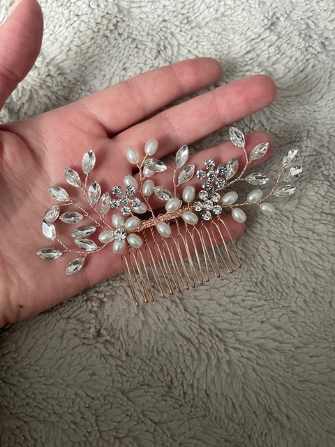 2 avis pour Coiffe de mariage, peigne à cheveux doré et argenté